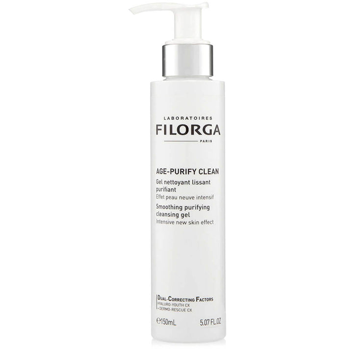 Filorga Age-Purify Clean Smoothing Purifying Anti-Blemish Face Cleanser Gel effectively removes excess sebum, impurities, makeup, and imperfections while also addressing aging signs and promoting skin health. Age-Purify Clean is a purifying anti-blemish face cleanser developed by aesthetic doctors and dermatologists, enriched with active ingredients for smooth and purified skin. This is a daily face wash for adult skin prone to acne that targets imperfections and aging signs, with a green gel texture that transforms into an ultralight foam. Filorga Age-Purify Clean Anti-Blemish Face Cleanser provides long-lasting hydration and plumps the skin while enhancing firmness and smoothness