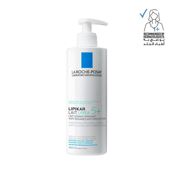 La Roche-Posay Lipikar Lait Urea 5+ is a nourishing body lotion designed to hydrate, replenish lipids, and reduce skin roughness. Enriched with Shea Butter, Urea, and pro-peeling agents, it gently exfoliates, smooths, and restores the skin's natural barrier. Ideal for skin with psoriasis or those prone to dryness, it leaves the skin feeling soft and soothed. The ultra-melt-in texture offers a non-greasy, non-sticky finish and is enriched with La Roche-Posay Thermal Spring Water for added comfort. Perfect for daily use to improve skin smoothness and comfort.