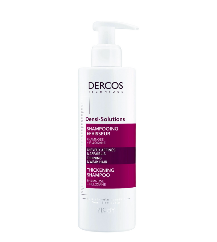 Vichy Dercos Densi-Solutions Thickening Shampoo is specially designed for fine and weakened hair, working to purify the scalp while boosting hair volume and thickness. Enriched with Rhamnose and Filoxane, this revitalizing formula removes impurities from the scalp and strengthens hair from root to tip. Its lightweight, clear texture transforms into a rich foam that rinses easily, leaving hair refreshed, fuller, and delicately fragranced for an invigorating experience. Perfect for achieving visibly thicker, healthier hair.